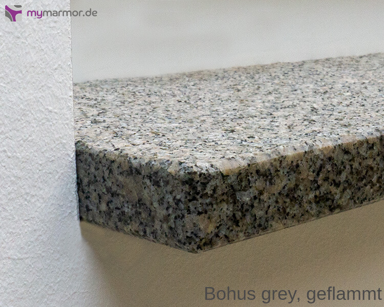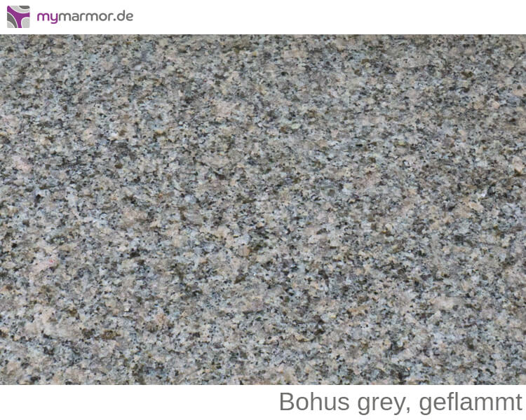 Bohus grey verliert mit geflammter Oberfläche etwas seiner Farbe und Struktur, durch die Behandlung mit S242 oder S244 kann man Farbe