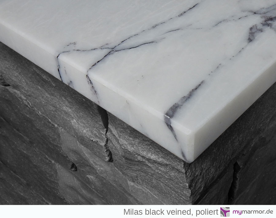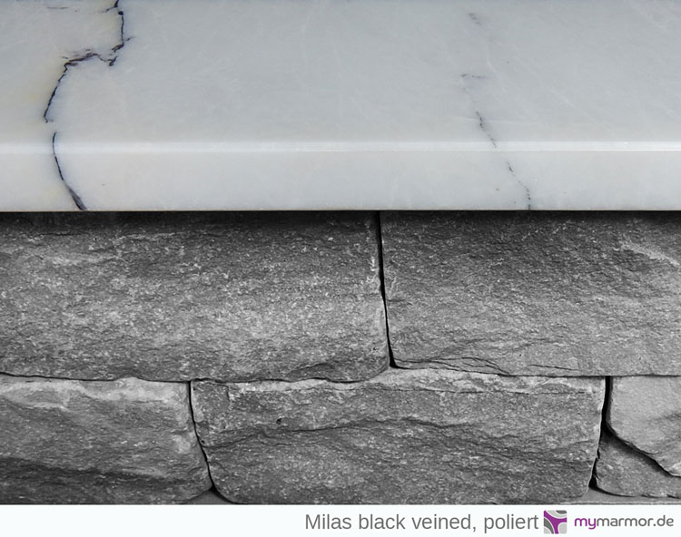 Milas black veined kann im Innenbereich in fast allen Bereichen eingesetzt werden.- Als Innenfensterbank